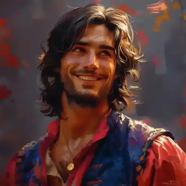 Создайте изображение человека в стиле Disney. Изобразите его с мягкими, плавными линиями, большими выразительными глазами и дружелюбной улыбкой, характерными для персонажей Disney. Фон может быть сказочным и красочным, дополняющим волшебную атмосферу.