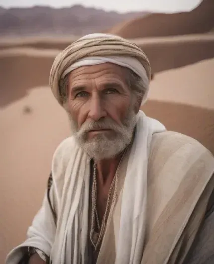 Белый мужчина, в пустыне, мягкий фокус, сложные детали, портретная фотография, сверхширокий угол, глубина резкости, сверхдетализация.